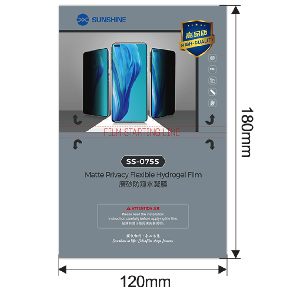 La PELLICOLA IDROGELO ANTI-PEEPING OPACA SS-075S è una pellicola protettiva in TPU di alta qualità, progettata per offrire privacy e protezione agli schermi dei dispositivi mobili.